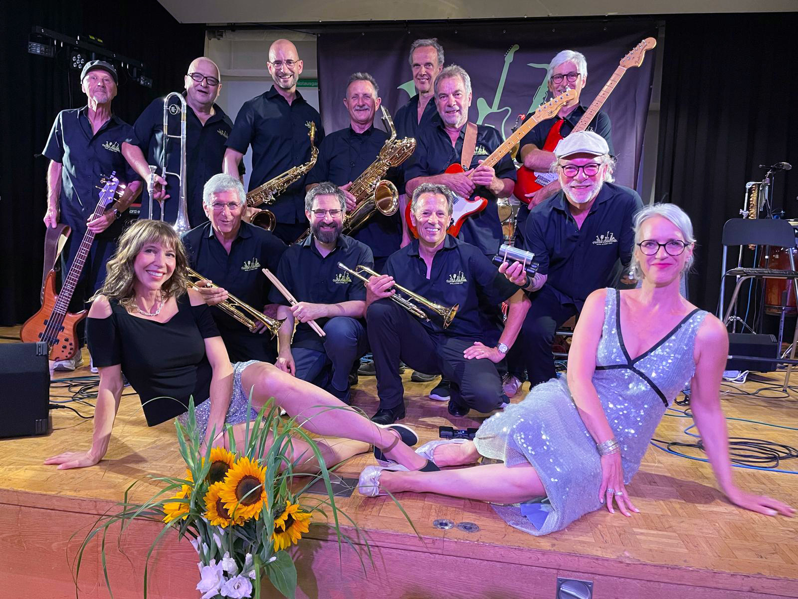 von links: Daniel Ebnöther, Bass | Sandra Hermann, Vocals | René Bamert, Trombone | Heinz Zürcher, Trumpet | Philipp Rietmann, Tenor Sax | Chris Weiller, Drums | Roger Théraulaz, Baritone Sax | Winfried Schmidt, Keys | Urs Brütsch, Trumpet | Sasi Heller, Guitar | Harco de Greef, Guitar | Mario Stocker, Percussion | Katja Herz, Vocals